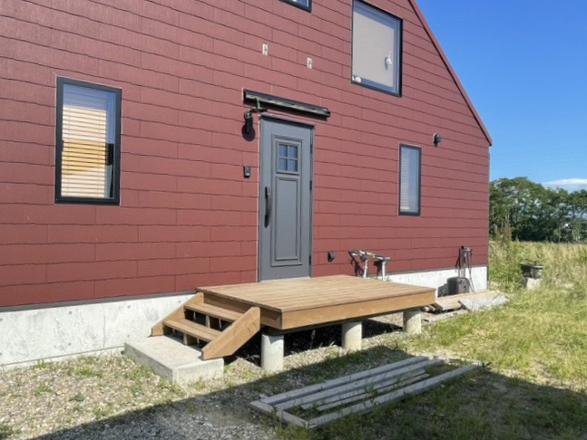 風の強い立地に合わせて設置された風除室は、暮らしを守りながら快適な出入りを実現。