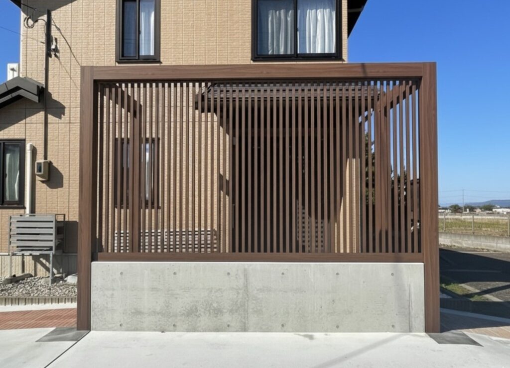 玄関前には目隠しフェンスを設置し、通りからの視線をほどよくカット。プライバシーを守りながらも、圧迫感を与えないデザインで、建物の外観に自然と馴染む仕上がりになりました。