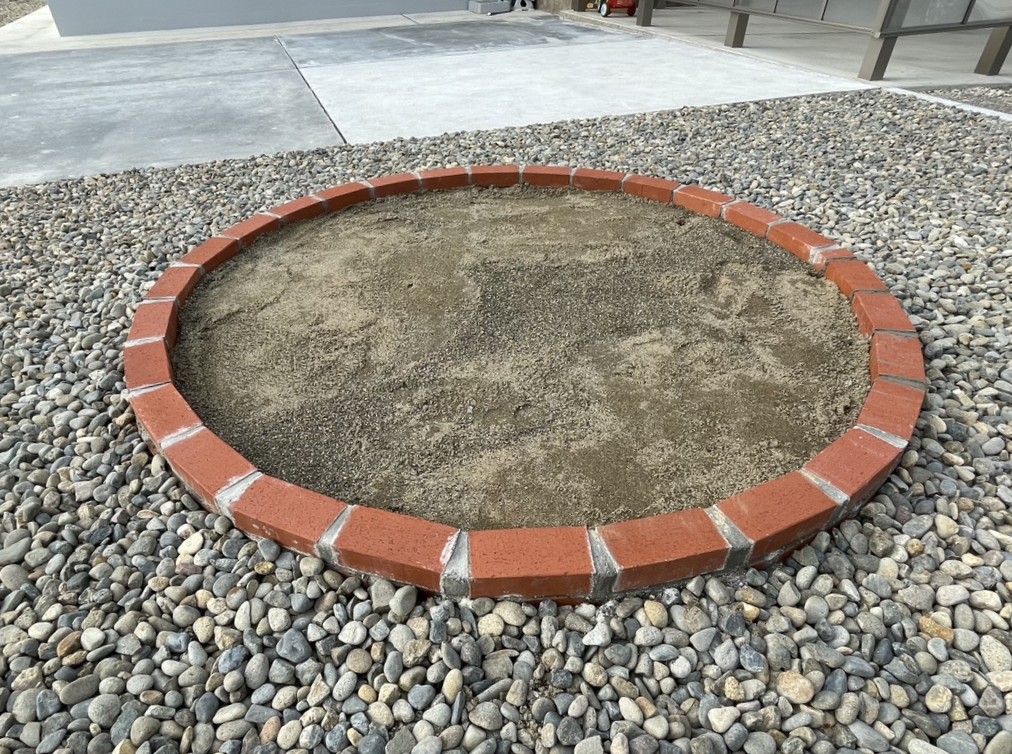 お子さまが安心して遊べるスペースとして、レンガで囲った砂場を設置。レンガの温かみある質感が庭全体に柔らかさを添え、家族で過ごす時間をより豊かに演出します。